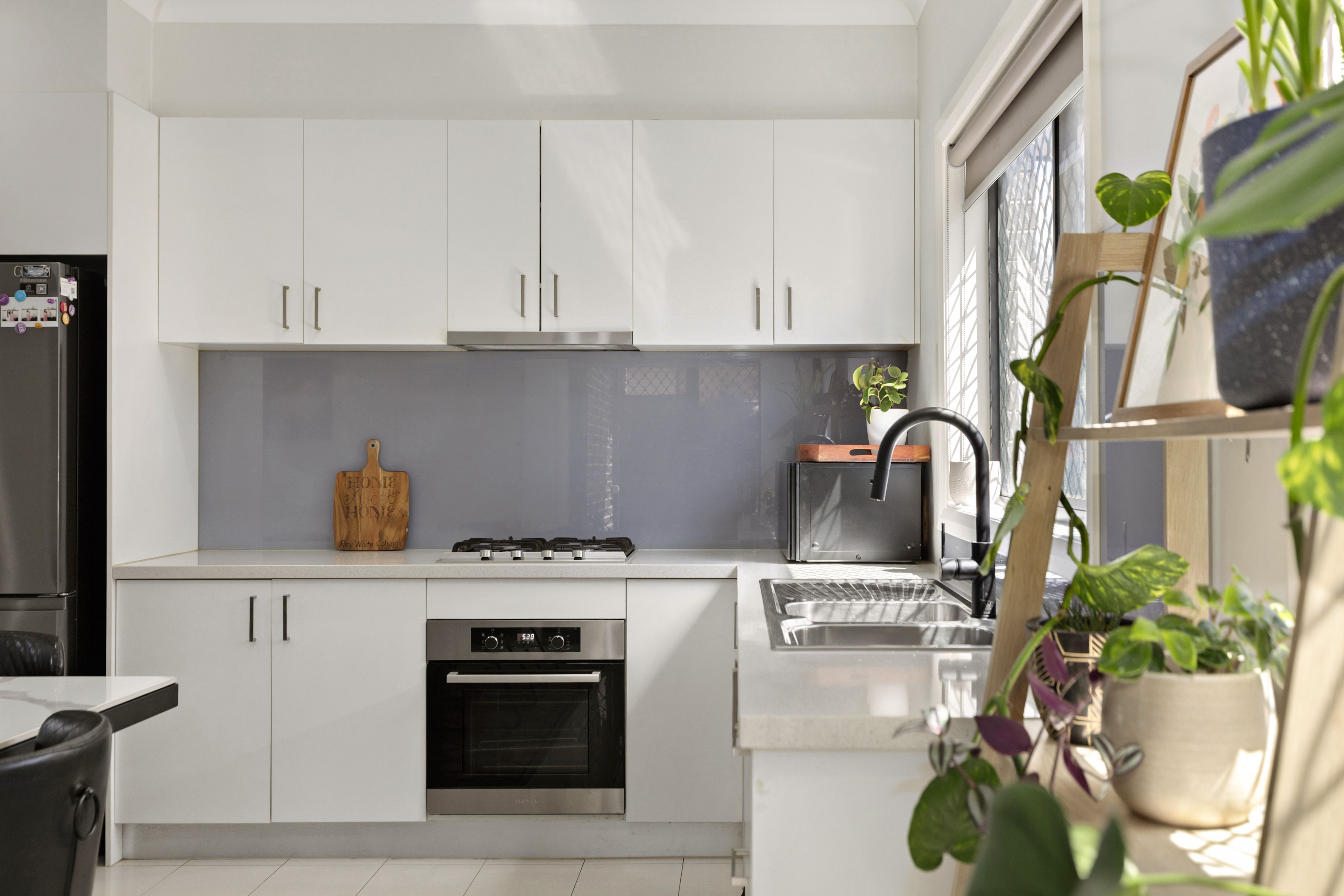 The ground floor is designed for connection and flow - a bright, open plan kitchen featuring 40mm stone benchtops, a sleek glass splashback, and 600mm stainless steel appliances seamlessly joins the dining and lounge areas before opening to the outdoor patio. This versatile indoor/outdoor zone is ideal for family meals, entertaining friends, or relaxed weekends at home. Downstairs also includes a full laundry, powder room, internal garage access, and a secure rear courtyard with room for children or pets to play safely.