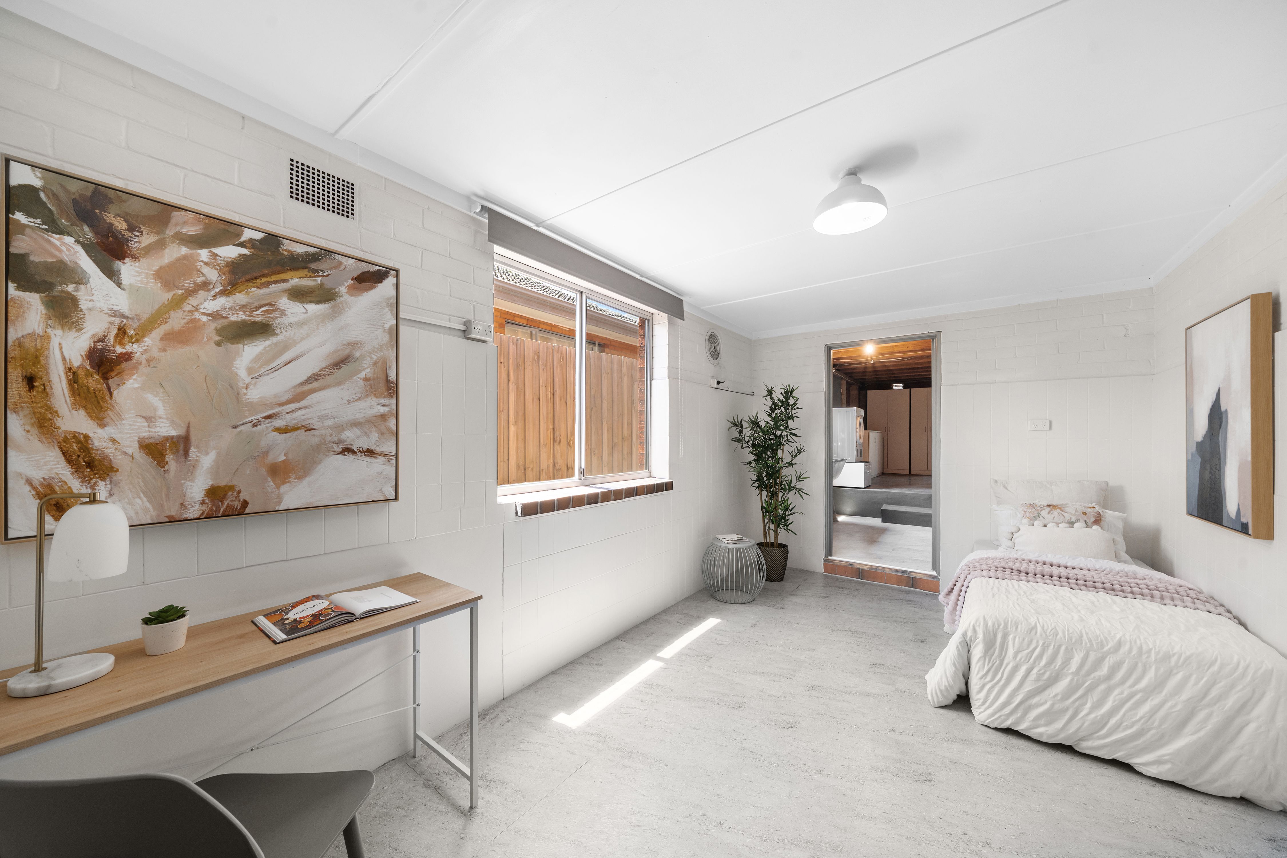 The second unit is a gem, offering a generous bedroom with his-and-hers walk-in robe, and ensuite with bath. The living area boasts a timber kitchen with double sinks and garden outlook, working fireplace, reverse-cycle air-conditioning, and a private balcony that seamlessly extends the indoor space outdoors.