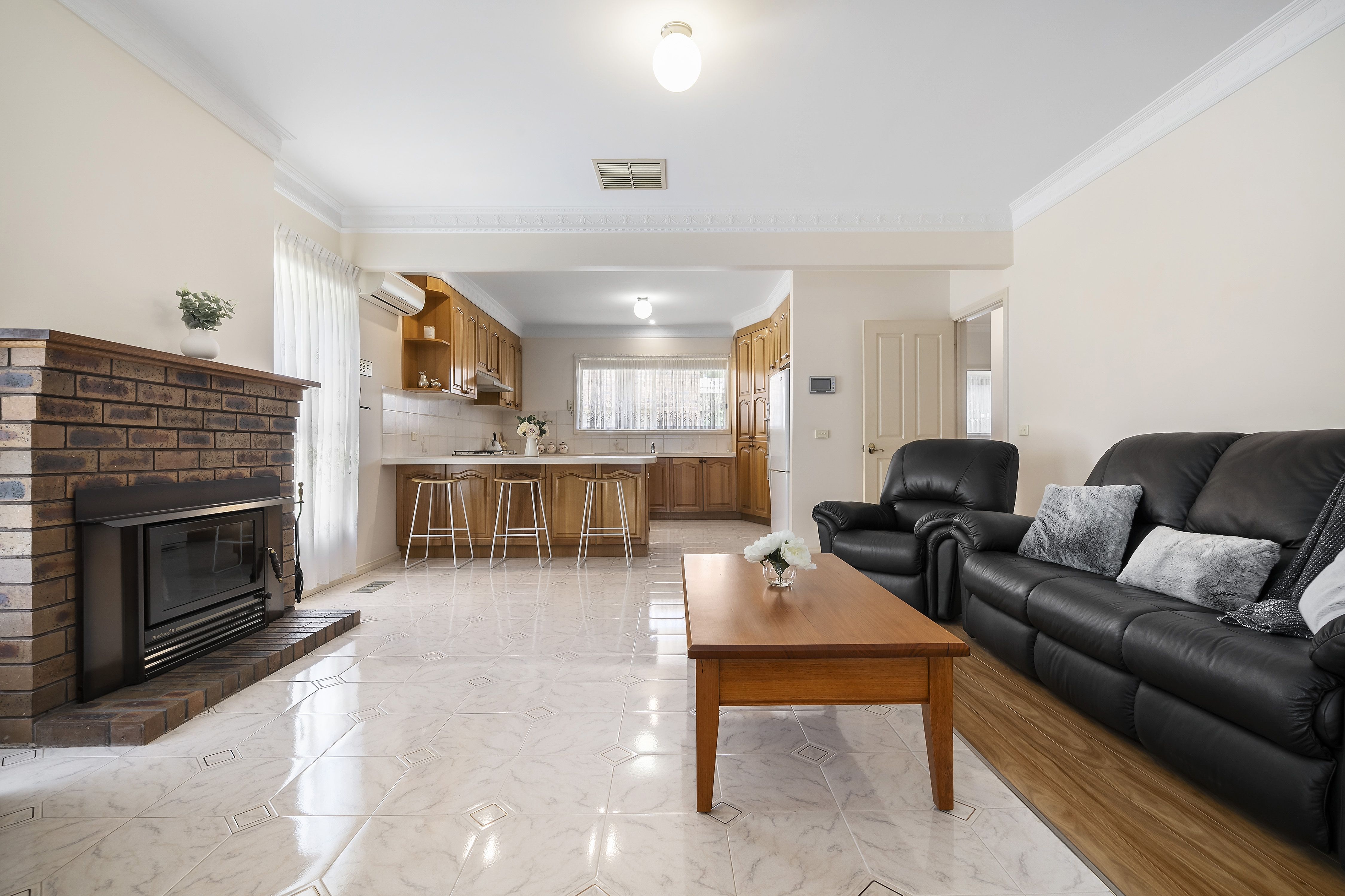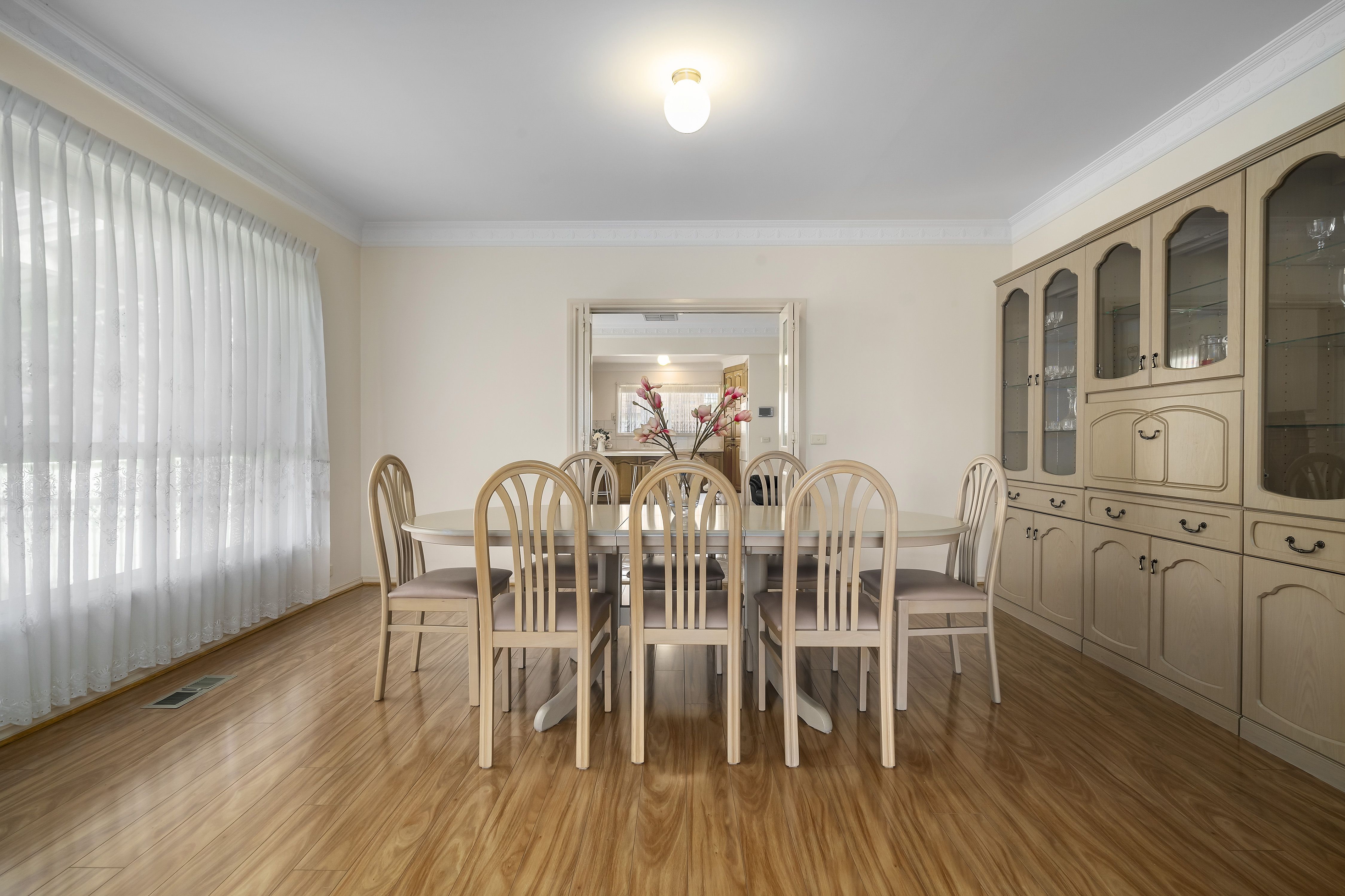Featuring a commanding gated facade, this property is big on space with multiple interchangeable living zones including a formal lounge room, formal dining room and expansive kitchen and meals area with log burning fireplace. The solid timber kitchen comes with Chef appliances, ample storage and plenty of bench space. The property offers four spacious bedrooms with robes that are drenched in natural light, a large master contains a walk in robe and well equipped ensuite. Servicing the other three bedrooms is a large bathroom with floor to ceiling tiles, shower and deep soaking tub with spa jets. Heading outside you will find a cozy porch overlooking tidy and mature gardens, rain water tank, double car garage, external kitchen, workshop, storage shed and a fully stocked firewood shed.