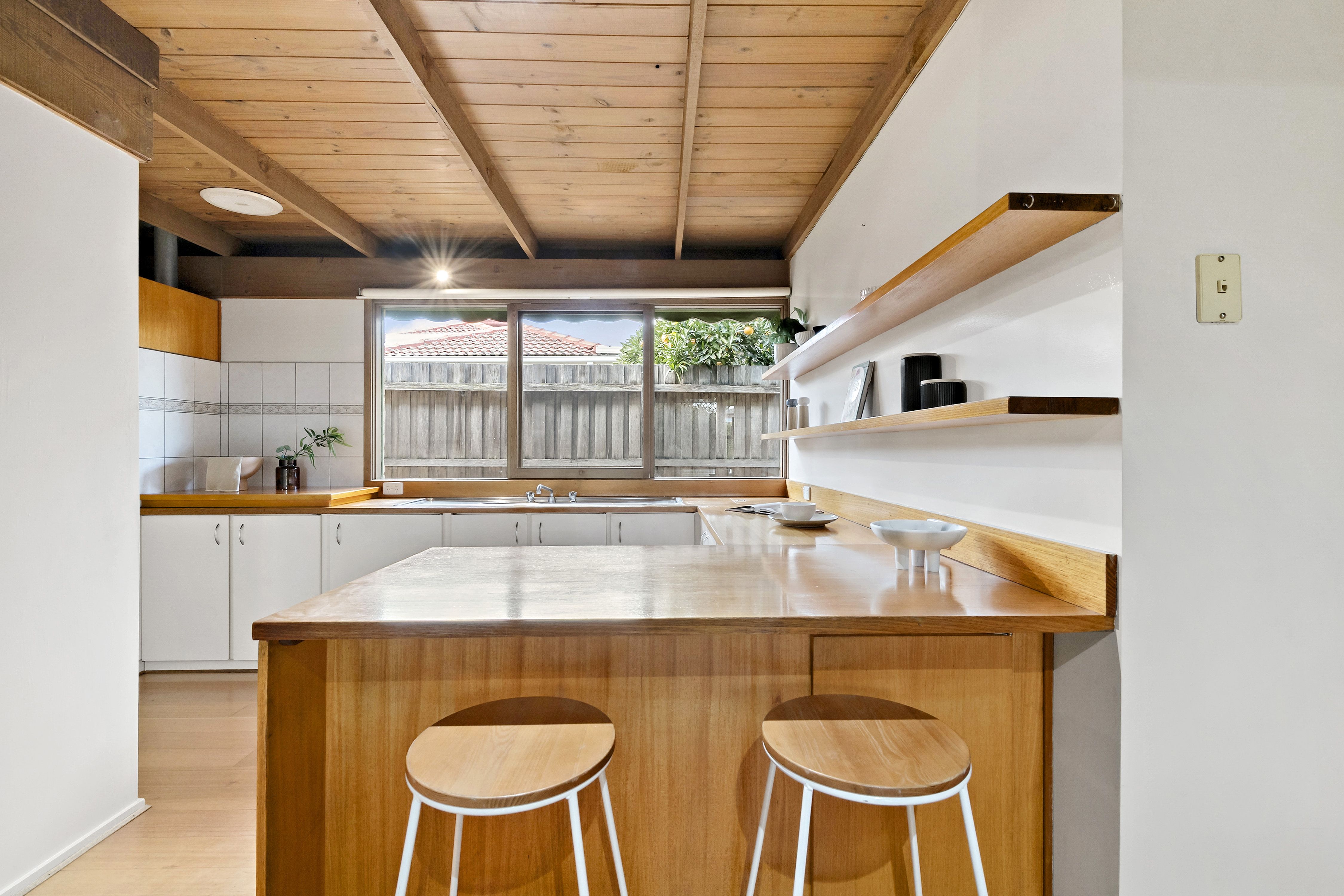 A timeless retreat that displays mid century flair and combines space and warmth with an expansive layout, exposed timber beams and neutral colour scheme. Upon entry you are greeted by a large living room that is accompanied by an intimate formal dining room leading to a well equipped kitchen with an abundance of storage, open shelving, stainless steel appliances including Westinghouse oven and grill and Blanco stove. The kitchen also features an adjoining meals area that overlooks a covered patio....