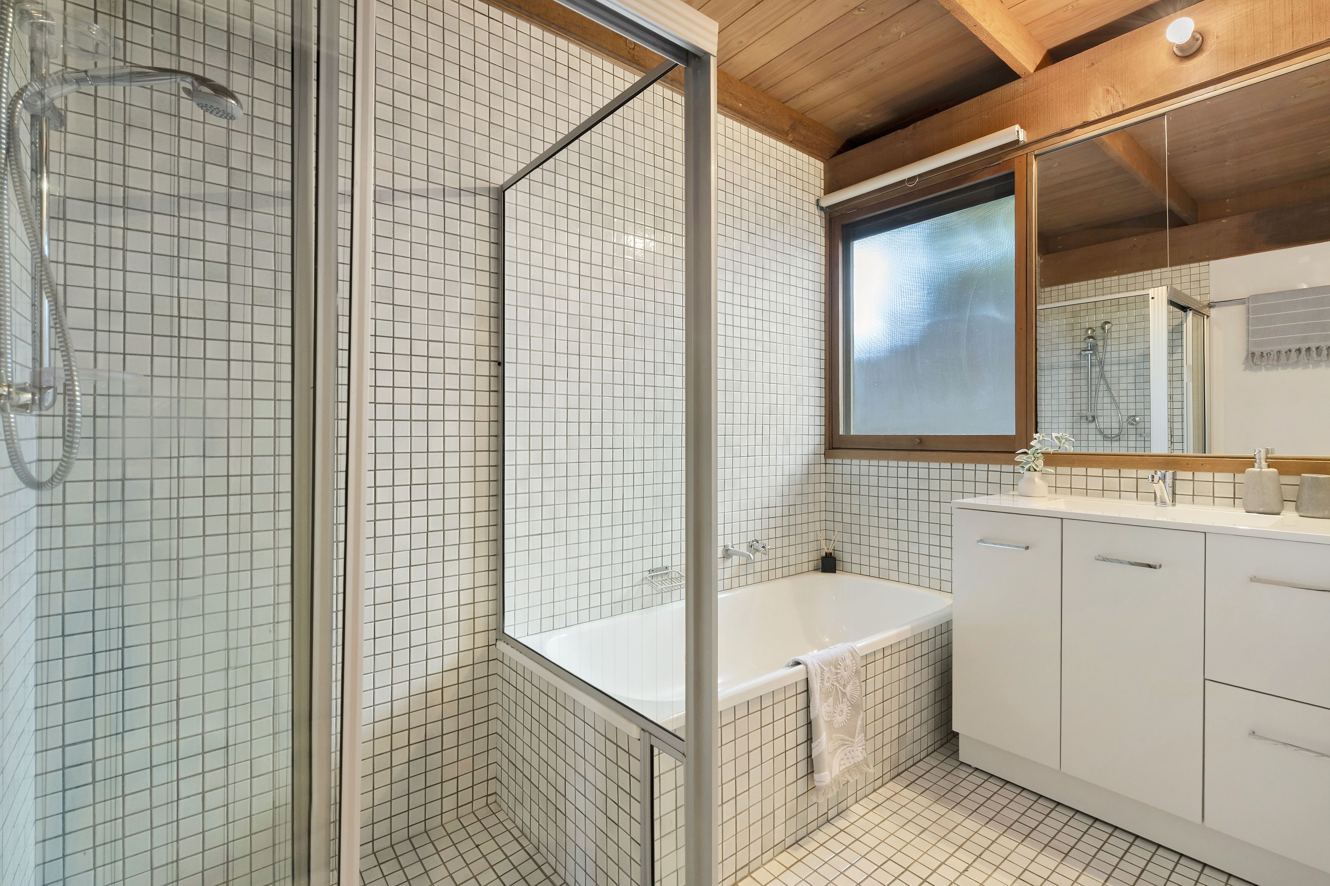 A timeless retreat that displays mid century flair and combines space and warmth with an expansive layout, exposed timber beams and neutral colour scheme. Upon entry you are greeted by a large living room that is accompanied by an intimate formal dining room leading to a well equipped kitchen with an abundance of storage, open shelving, stainless steel appliances including Westinghouse oven and grill and Blanco stove. The kitchen also features an adjoining meals area that overlooks a covered patio. The home comprises of four bedrooms in total each with built in robes and are all serviced by a main bathroom complete with fully mosaic tiled shower, bathtub and vanity. The master suite offers plenty of space and amenities including built in robes, study nook and ensuite with shower, sink, mirrored medicine cabinet and skylight. Venture outside to find a large covered alfresco, framed by established and manicured landscaping, double carport with rear workshop and extra secure off street parking.