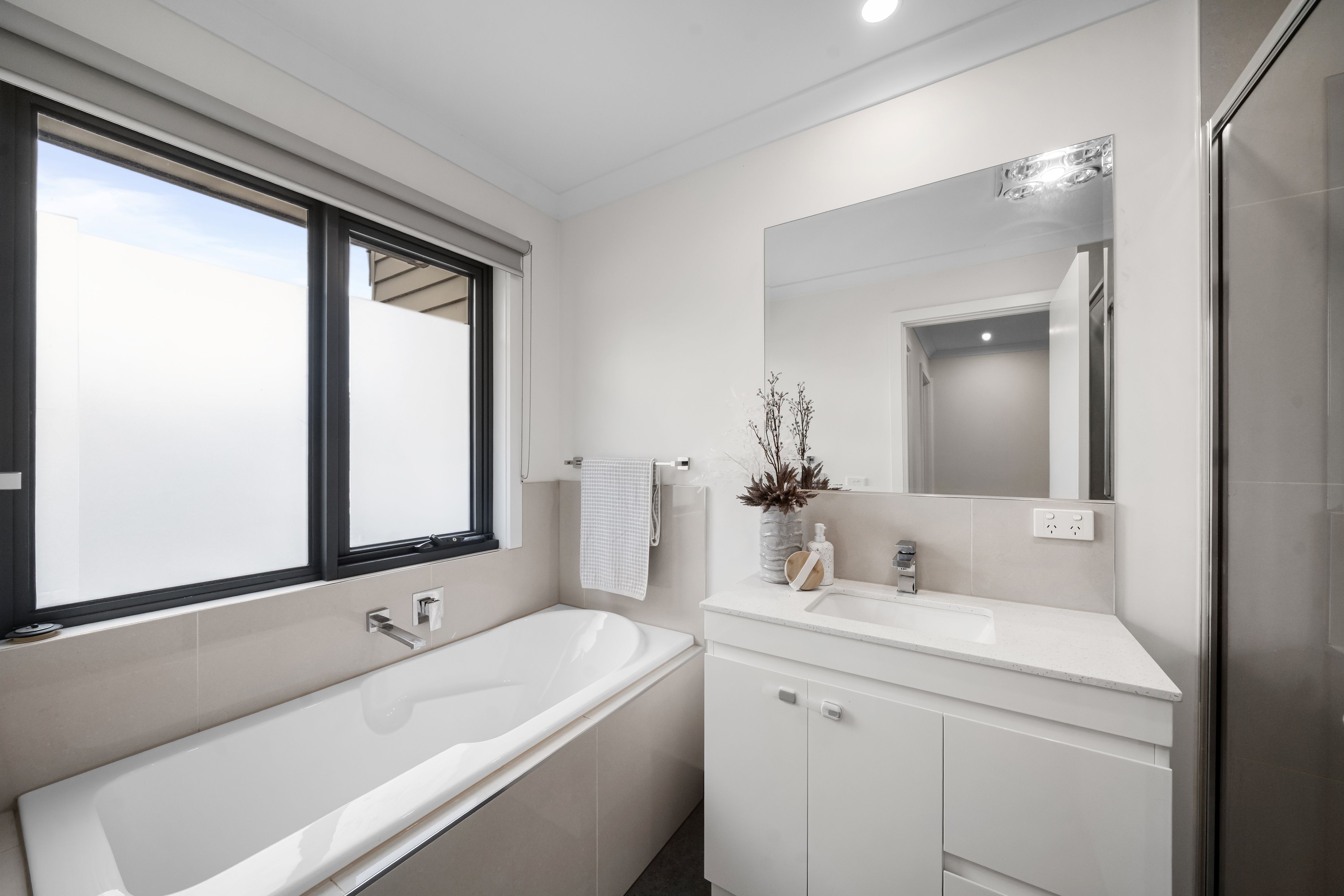 The accommodation offers well-proportioned bedrooms with built-in storage, serviced by a modern central bathroom finished with clean, contemporary tones. Every element of the home has been designed with low-maintenance living in mind, allowing you to spend more time enjoying your lifestyle and less time on upkeep.