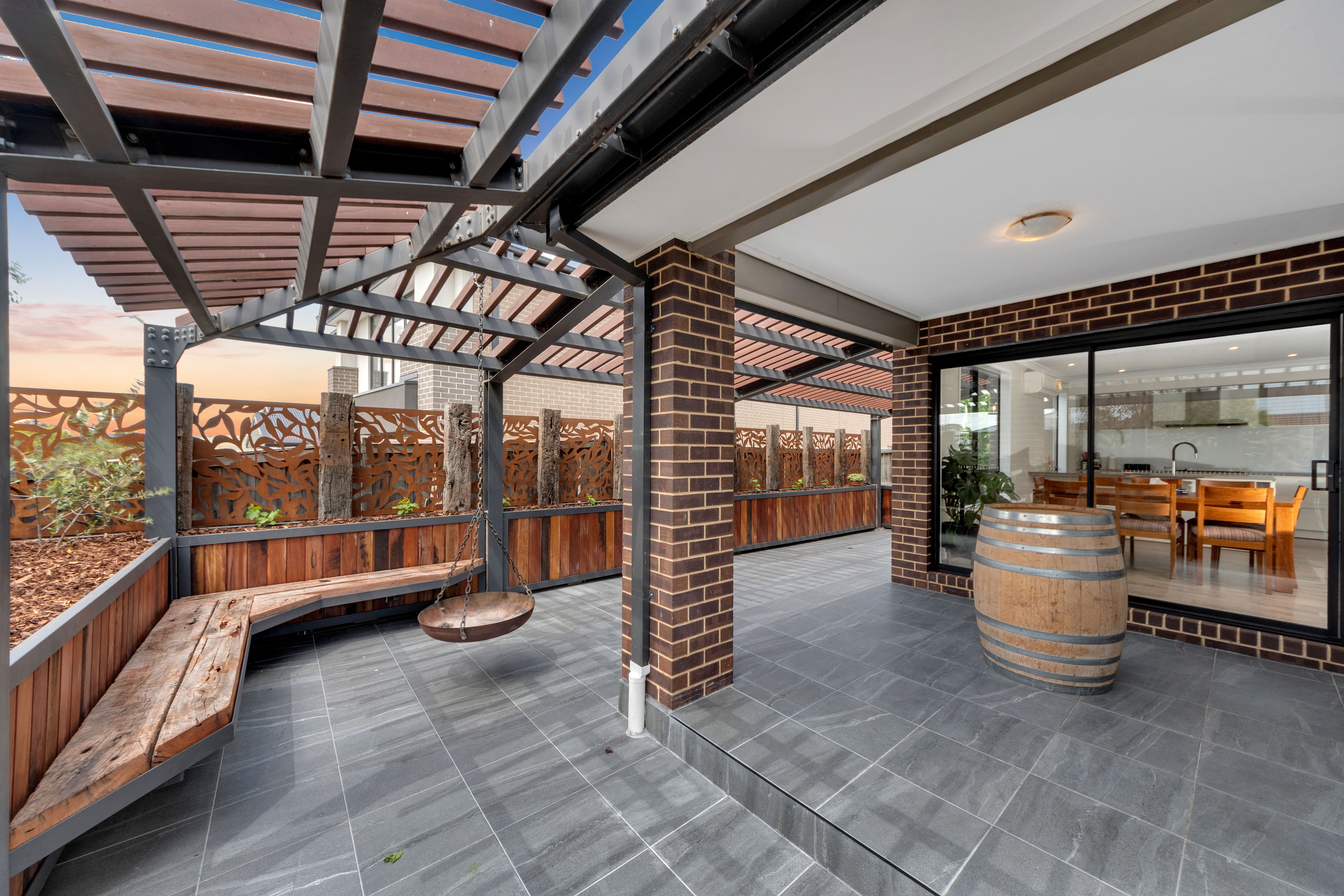 Step outside and discover an entertainer's dream - the backyard features a stunning built-in BBQ area and a hanging fireplace, creating the ultimate year-round retreat for family gatherings and relaxed evenings with friends. Whether you're entertaining or unwinding, this space has been designed to impress.