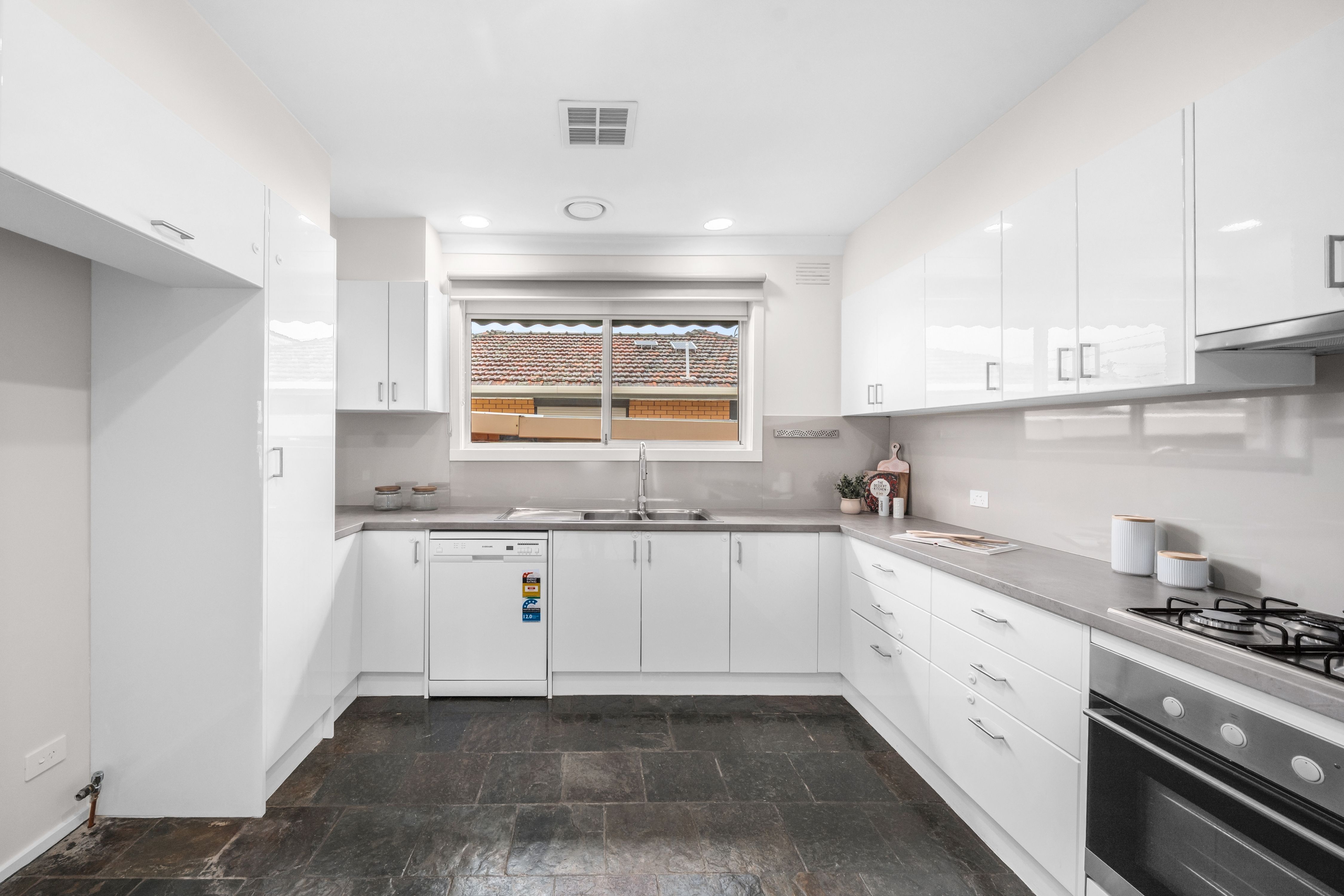 Freshly painted, renovated and filled with natural light, the home feels modern, inviting and effortlessly liveable. Polished hardwood floors flow throughout, creating a seamless sense of space and style. The practical family-friendly layout begins with a welcoming living room featuring large corner windows and a feature fireplace, leading through to the dining area and well-appointed kitchen. The kitchen boasts an integrated oven, gas cooktop, double sinks with window outlook, ample storage and generous bench space.