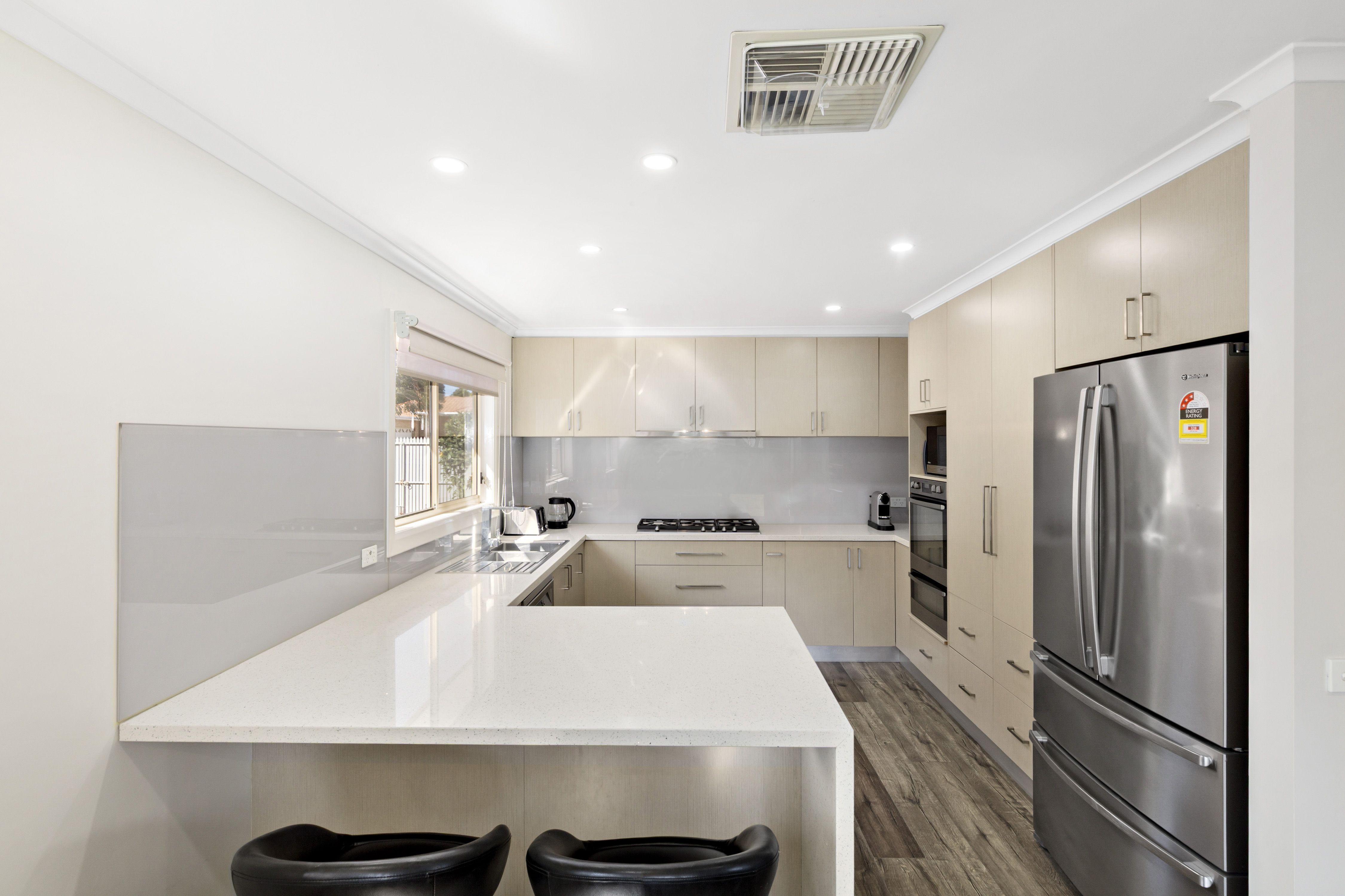An immaculate backyard offers tidy garden beds, lush lawn and double car garage that is currently fitted out with its very own bar and kitchenette. Above the garage there is also a recreation room that offers extra space for the family to retreat, study or entertain.