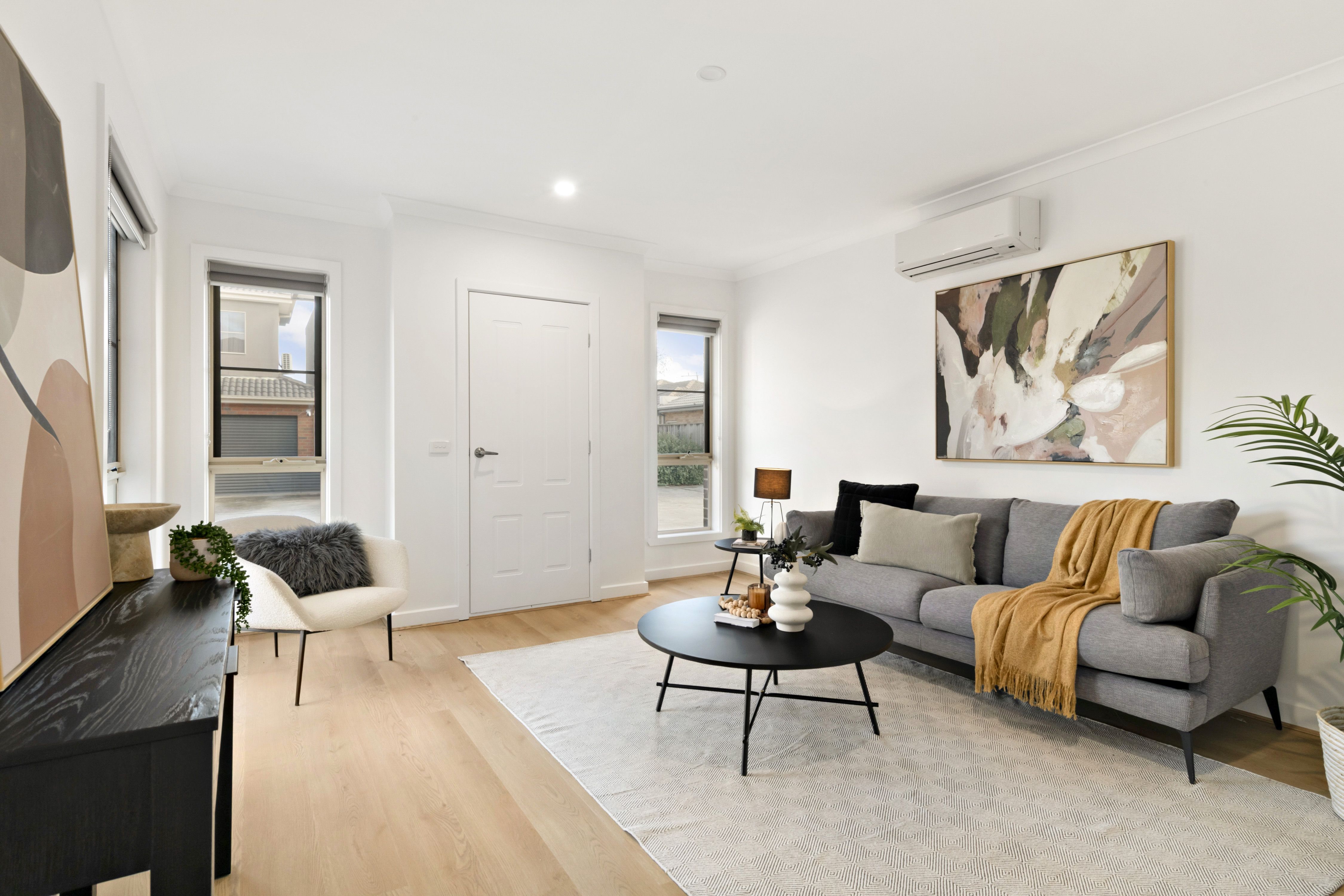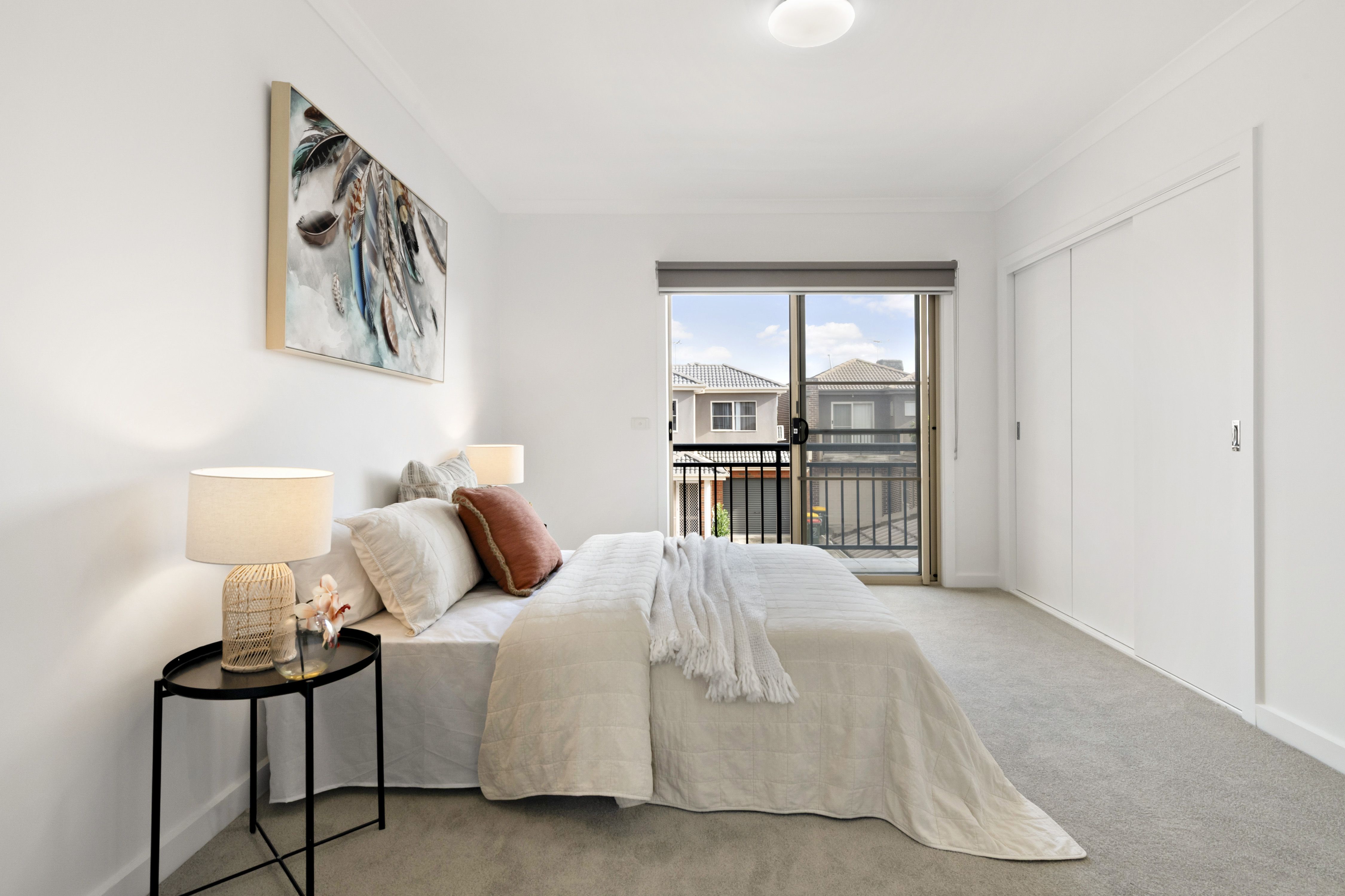 Step inside to find a spacious living room with an abundance of natural light that leads to an expansive kitchen and meals area offering plenty of storage, ample bench space and stainless steel appliances. The meals area overlooks a well sized courtyard with lush lawn and tidy garden bed. The ground floor also features a good sized bedroom with built in robe. Venture upstairs to find two further bedrooms each with built robes, serviced by a well equipped bathroom with vanity, tiled shower bathtub and dual access to the master suite which contains its very own balcony.