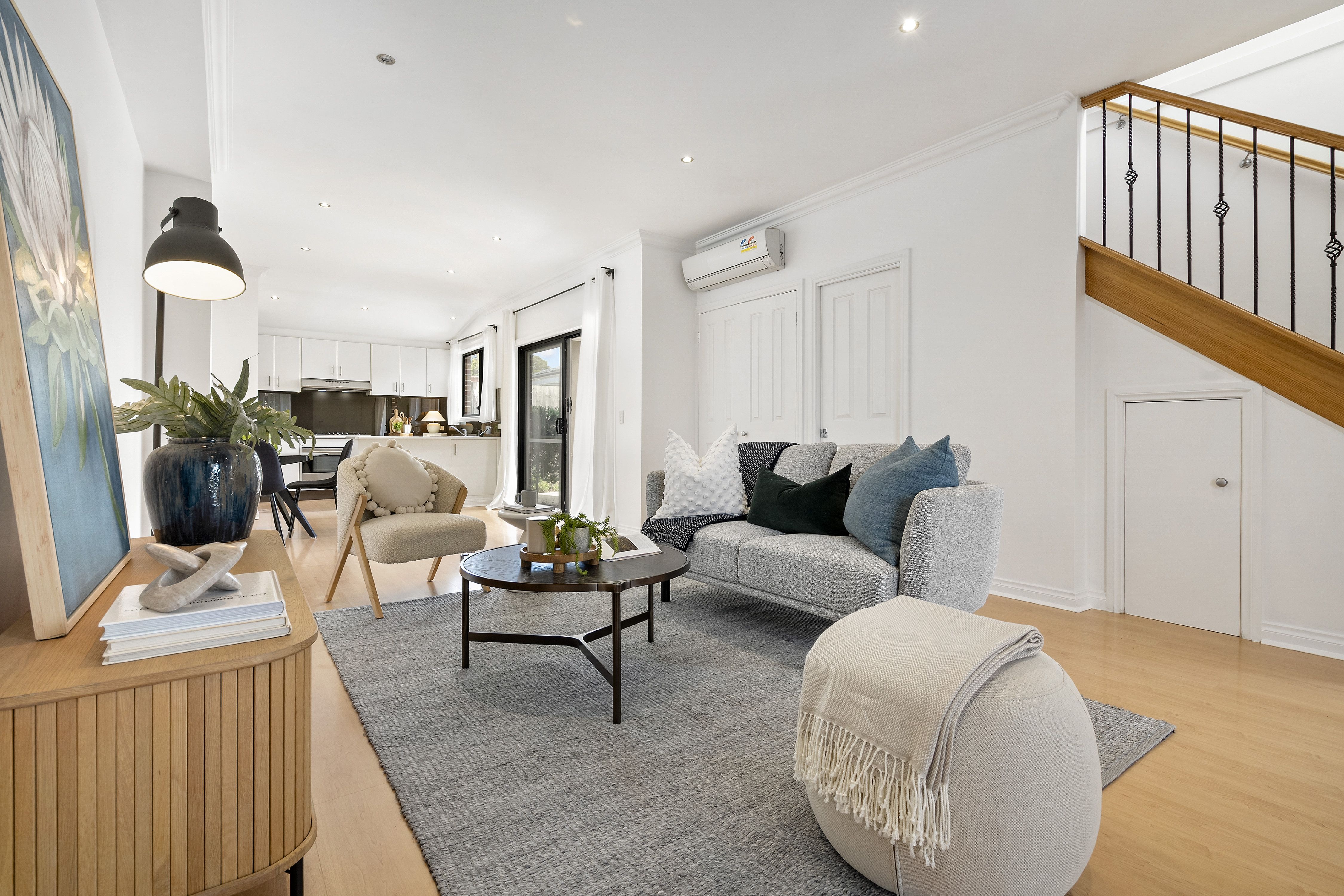 • A beautifully crafted timber staircase seamlessly connects the two levels