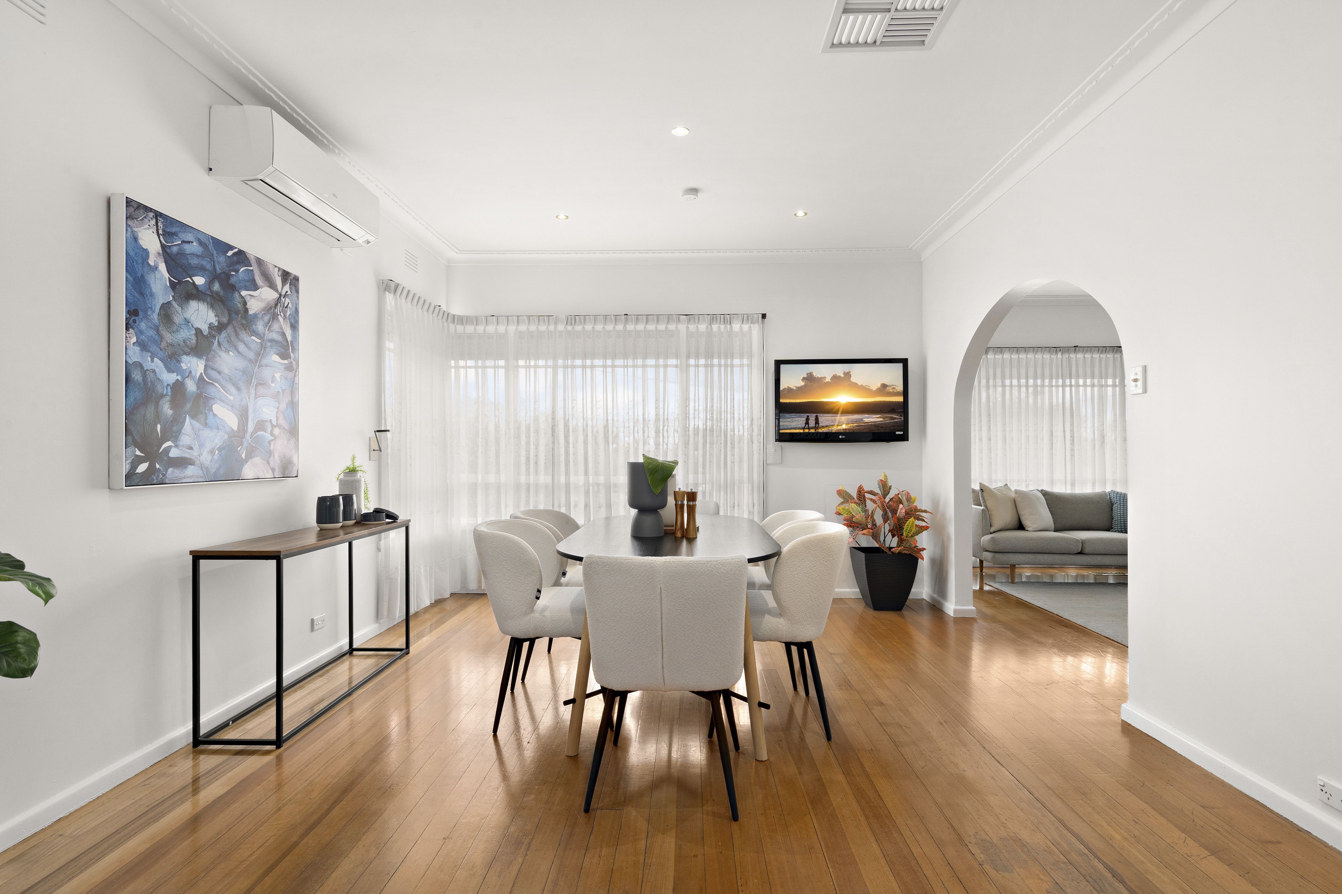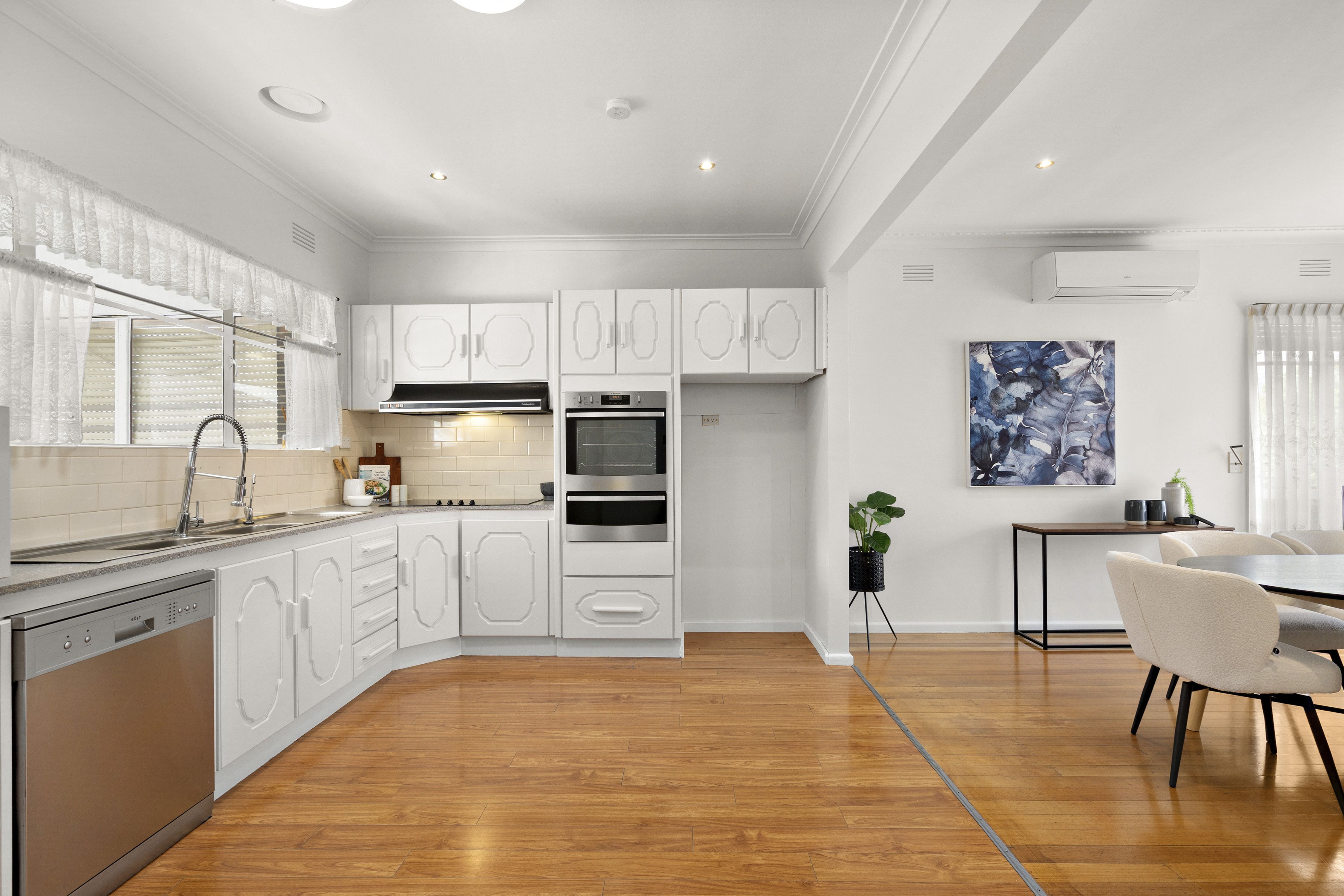 A functional and spacious kitchen on offer, the perfect place to bring out your inner chef, with an abundance of cupboard space, induction cooktop, wall oven, and dishwasher, all topped off by an adjoining dining area.