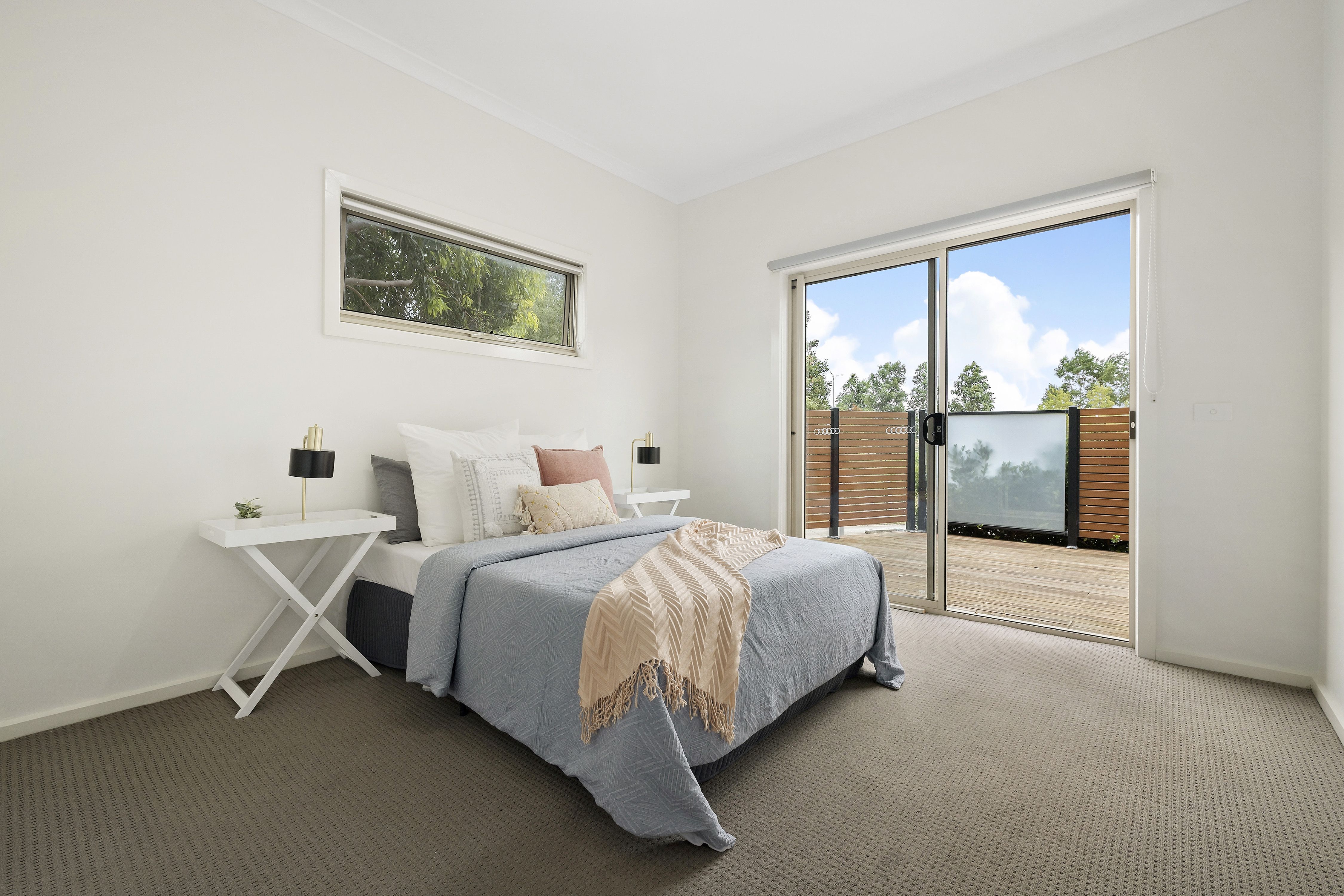 Welcome to this trendy and contemporary unit, offering a perfect blend of style and functionality. This property features two spacious robed bedrooms on the ground floor, each with direct access to a large decking area, perfect for relaxing or entertaining. The central bathroom adds convenience and comfort to your daily routine.