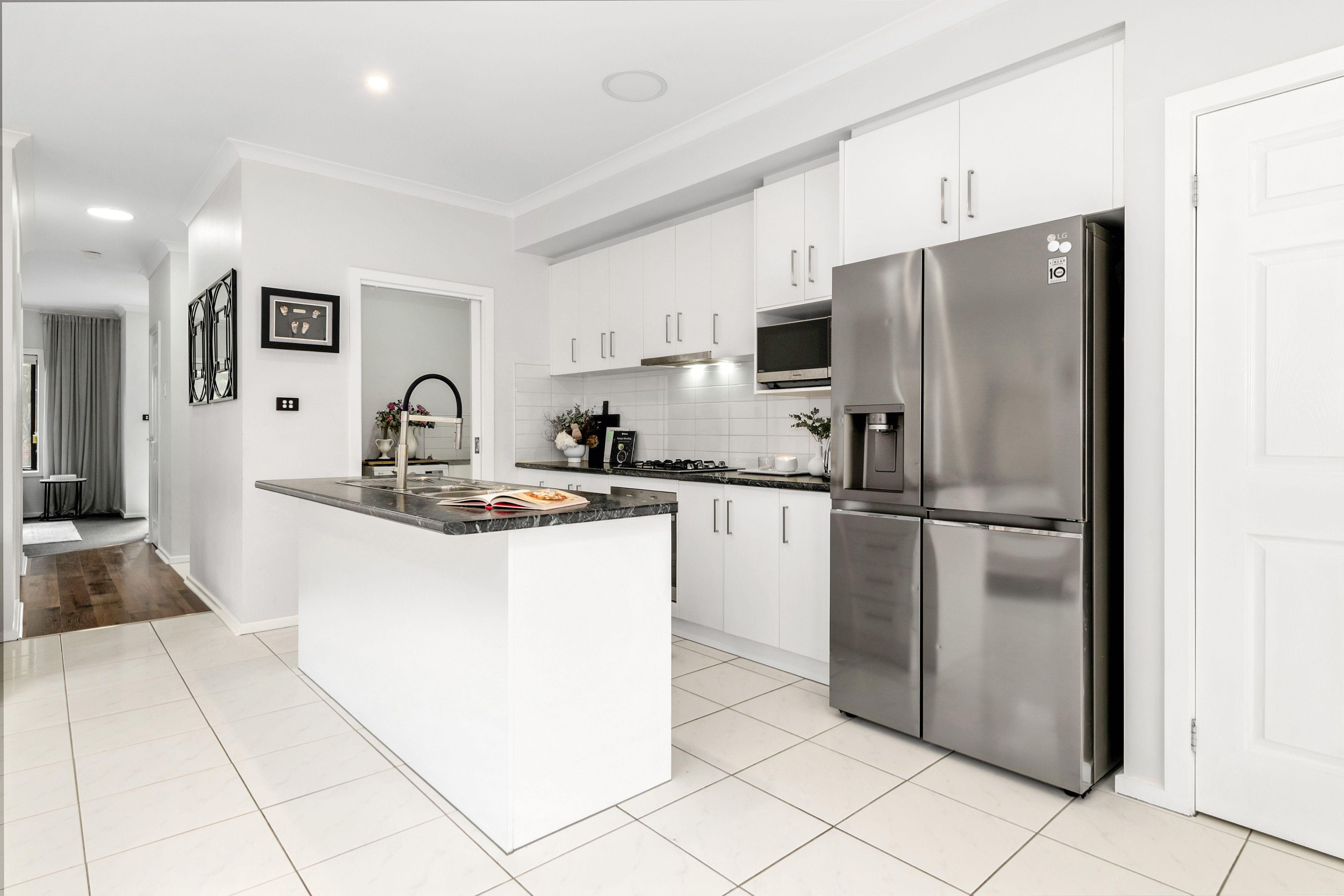 - Upstairs retreat: Three generous bedrooms with custom windows, including a master suite with luxurious ensuite and walk-in robe