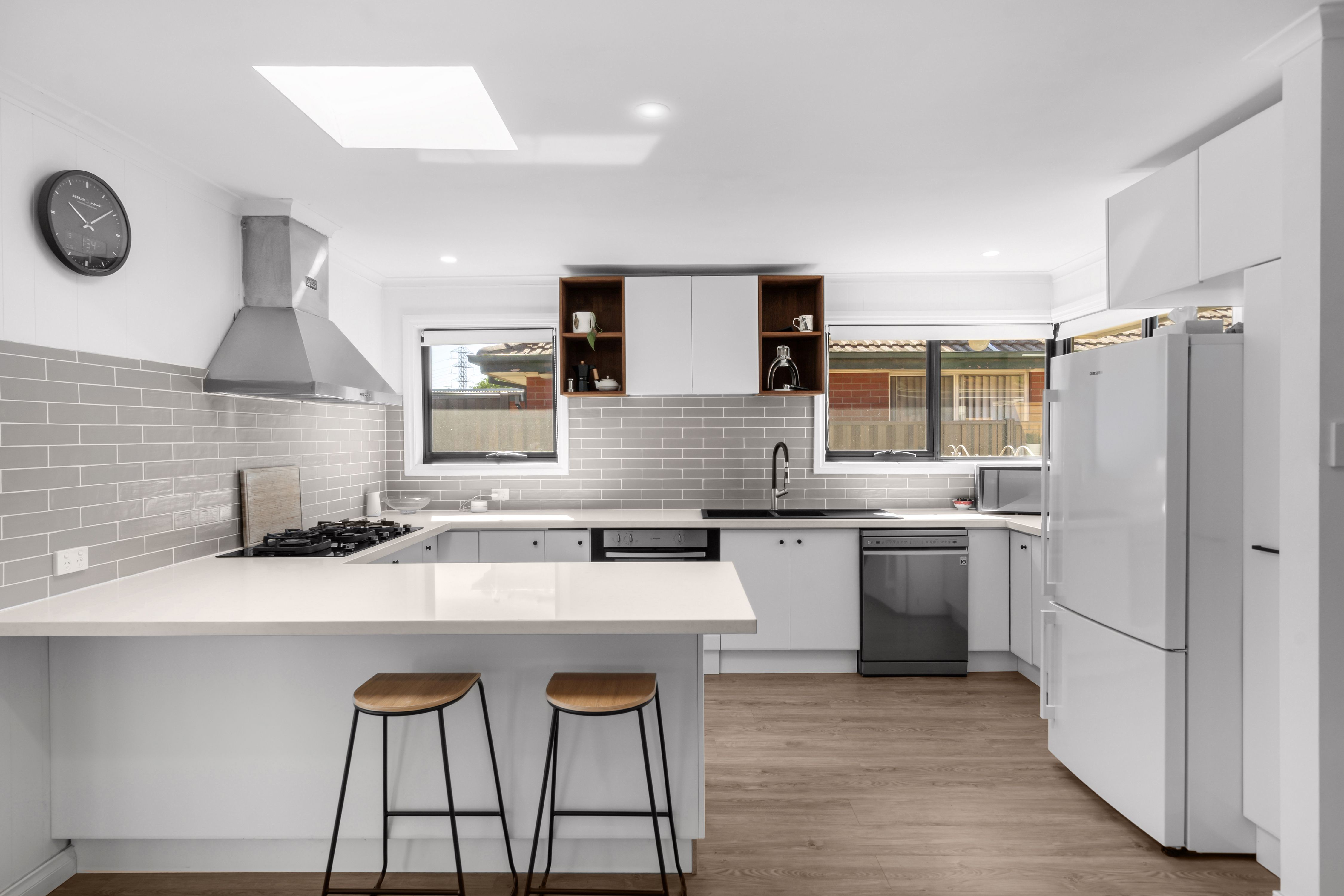 Moving through the home, you're welcomed into a stunning open-plan living zone. The light filled living room features a cosy electric fireplace and seamlessly flows through to the dining and kitchen area, creating a warm and inviting space. The modern kitchen has been thoughtfully designed with ample bench space and excellent storage, making it as practical as it is stylish.