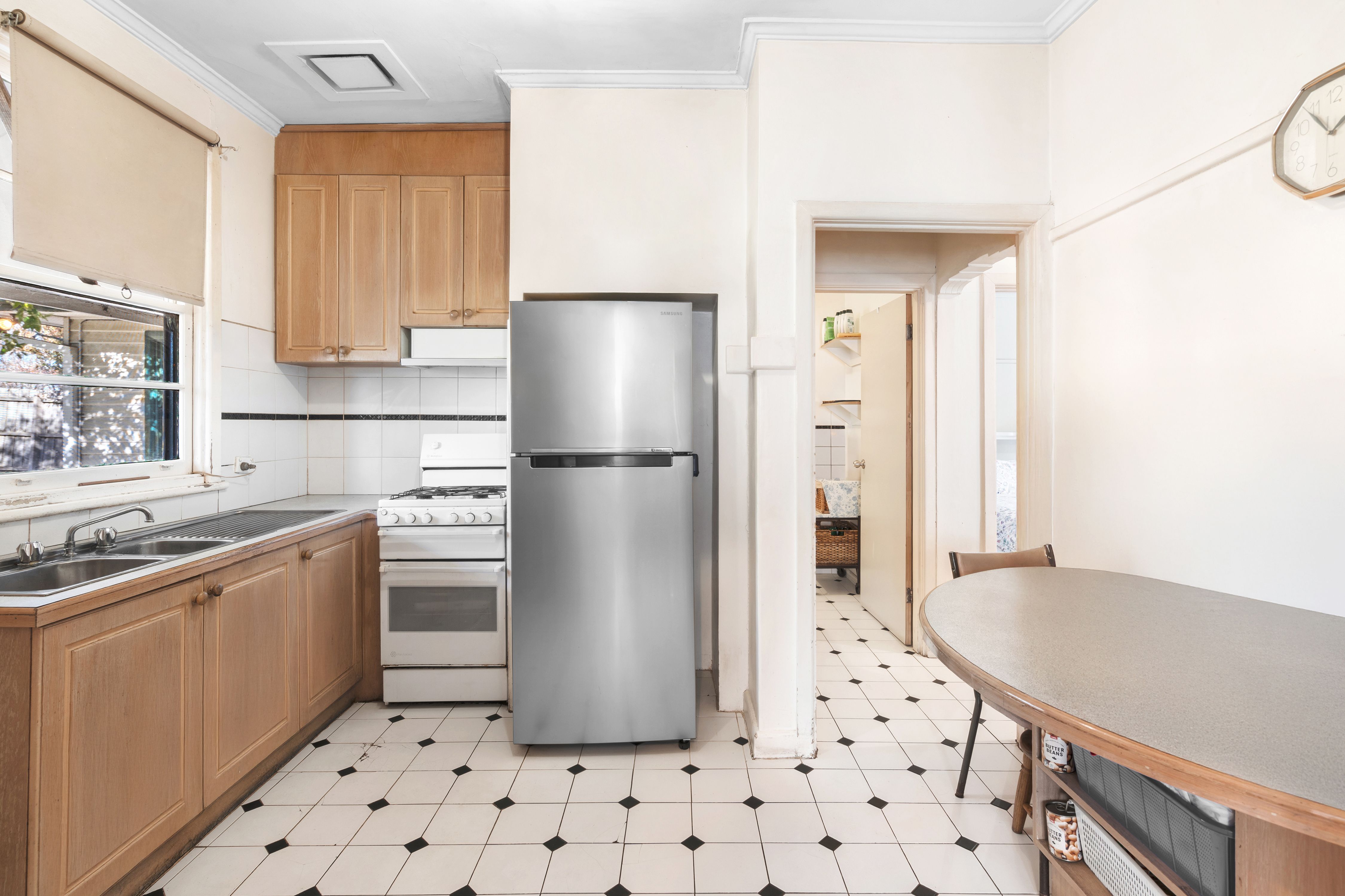 Enjoy the luxury of two generously sized living rooms, perfect for family gatherings or entertaining friends. The original spacious kitchen is a chef's delight, boasting stainless steel appliances and ample cupboard space, making meal preparation a breeze.