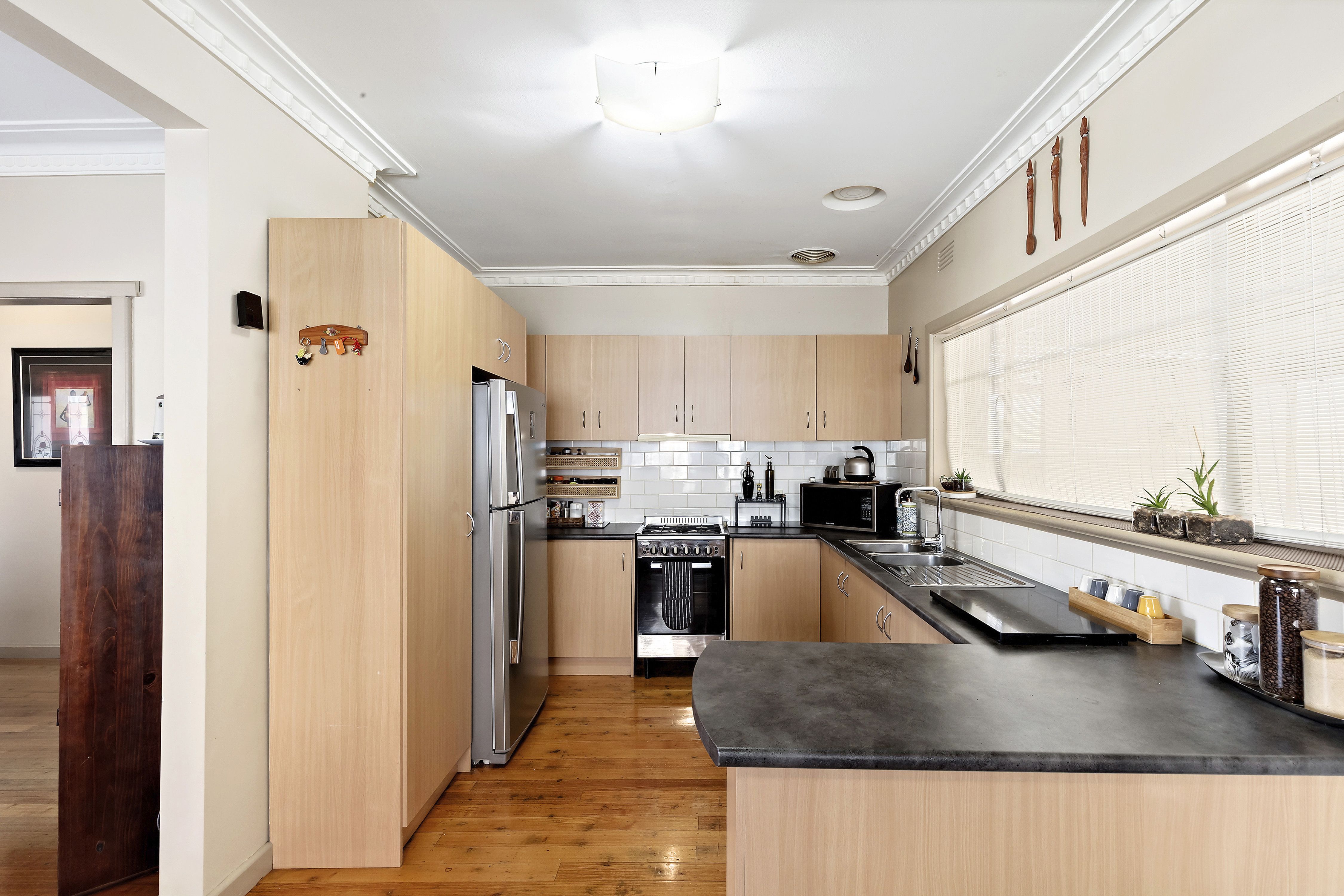 Set on a generous 563 m² (approx.) allotment, this residence features a traditional floorplan with beautiful hardwood floors throughout. The accommodation comprises three spacious bedrooms, with the flexibility to create a fourth bedroom or a dedicated home office to suit your family's needs.