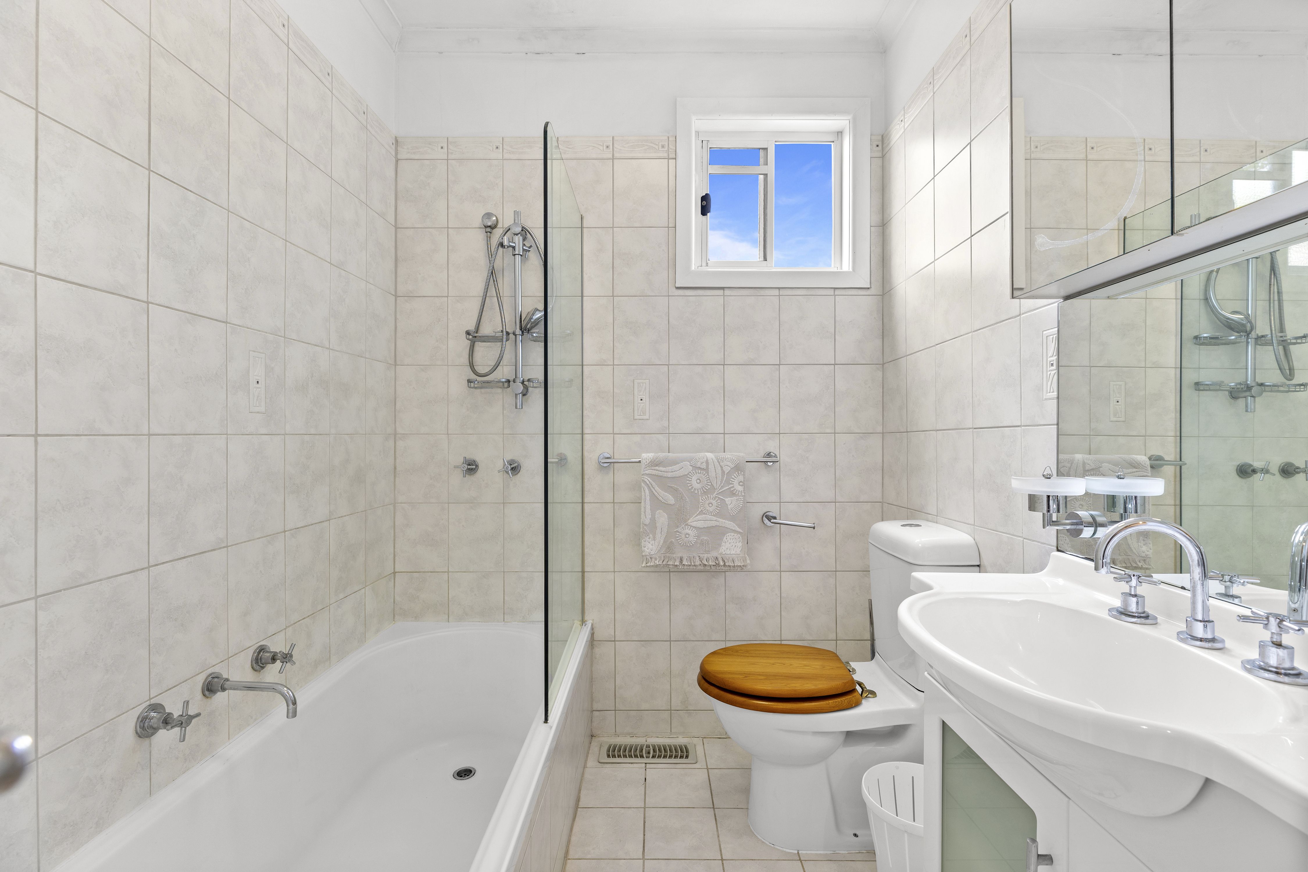 The well-appointed kitchen is equipped with gas stainless steel appliances, delivering both style and practicality for everyday living and entertaining. Three spacious bedrooms are complemented by two bathrooms, ensuring convenience for growing families or guests.