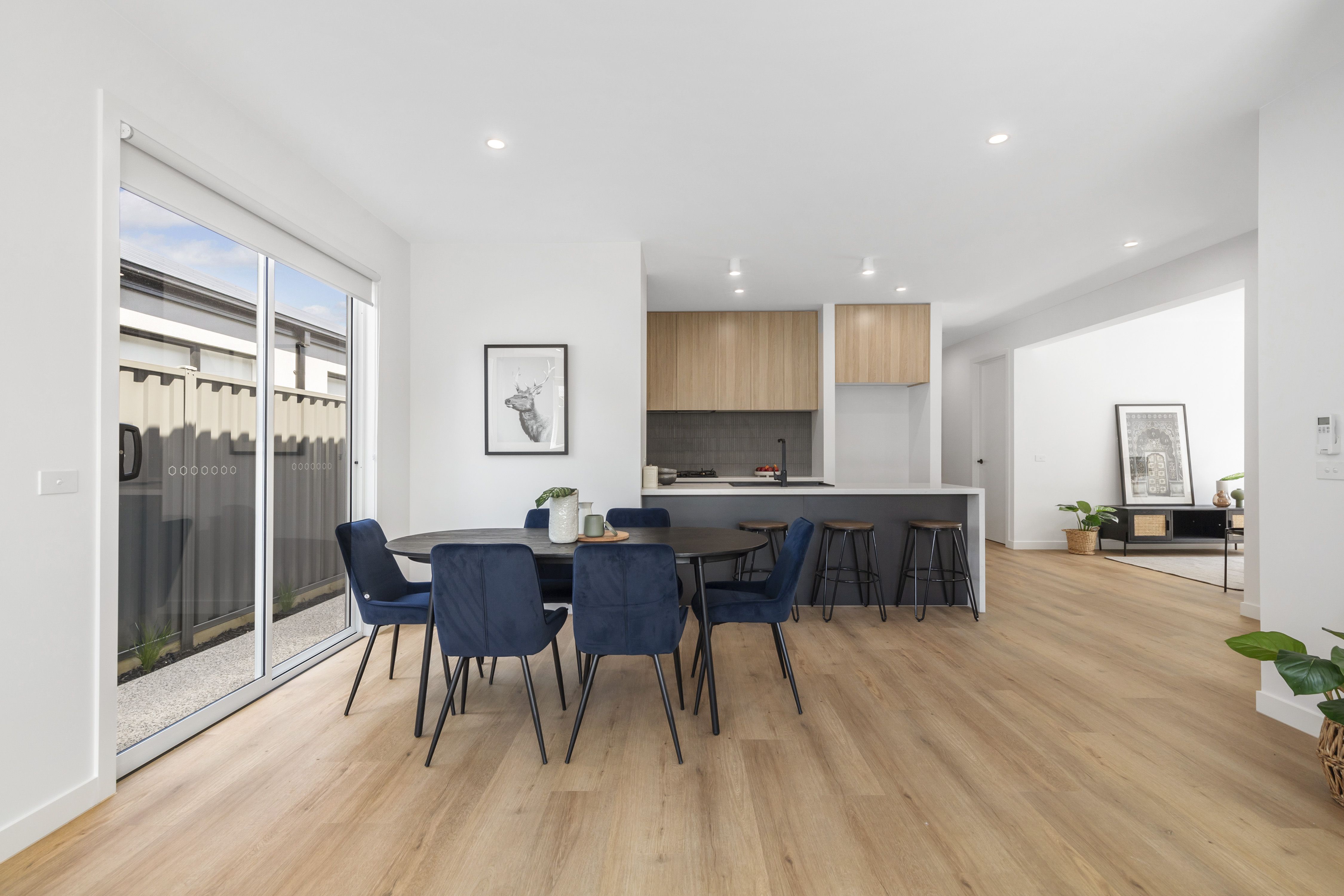 Warm neutral tones, natural light and a welcoming ambience highlight spacious interiors, with open-plan living/dining complementing a gourmet kitchen featuring stone surfaces, breakfast bench, stainless steel appliances and butlers pantry with additional bench space.