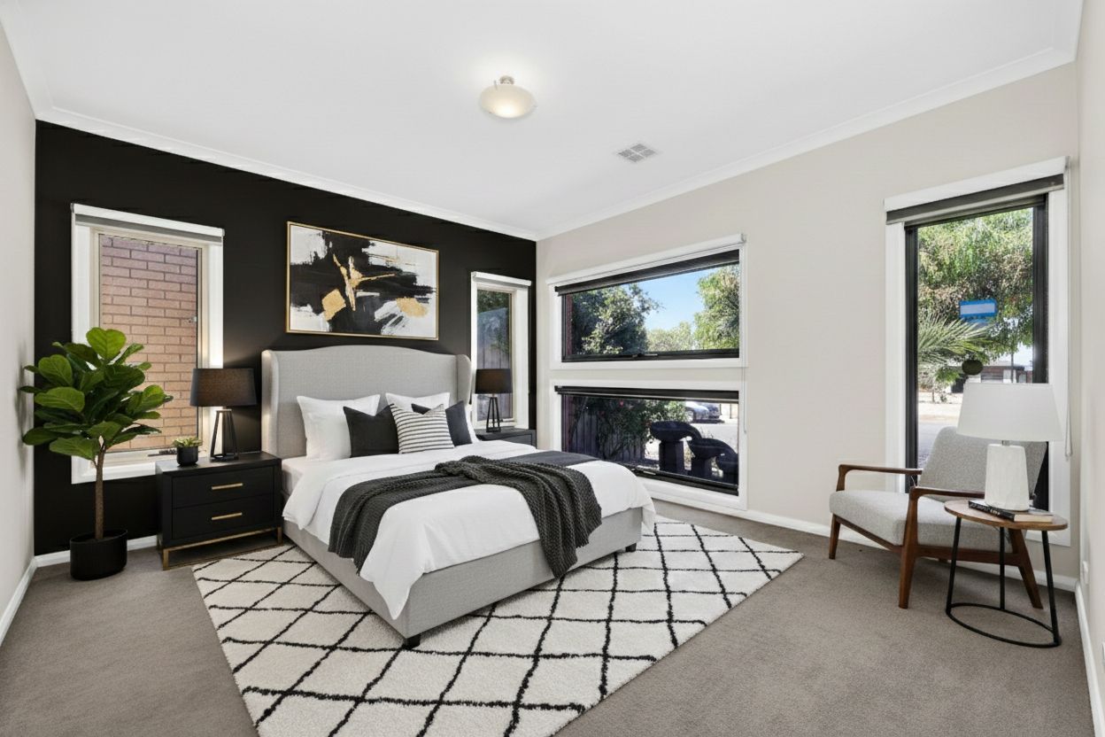 Set behind a striking modern façade, this beautifully presented 4-bedroom, 3-bathroom single-level home sits on a 448 m² block and combines contemporary design, quality finishes, and everyday comfort in a highly sought-after Wollert location.