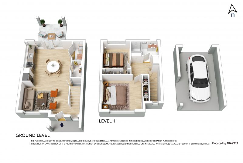 The first level presents an impressive central bathroom and two spacious rooms, spoiling you with built in robes.