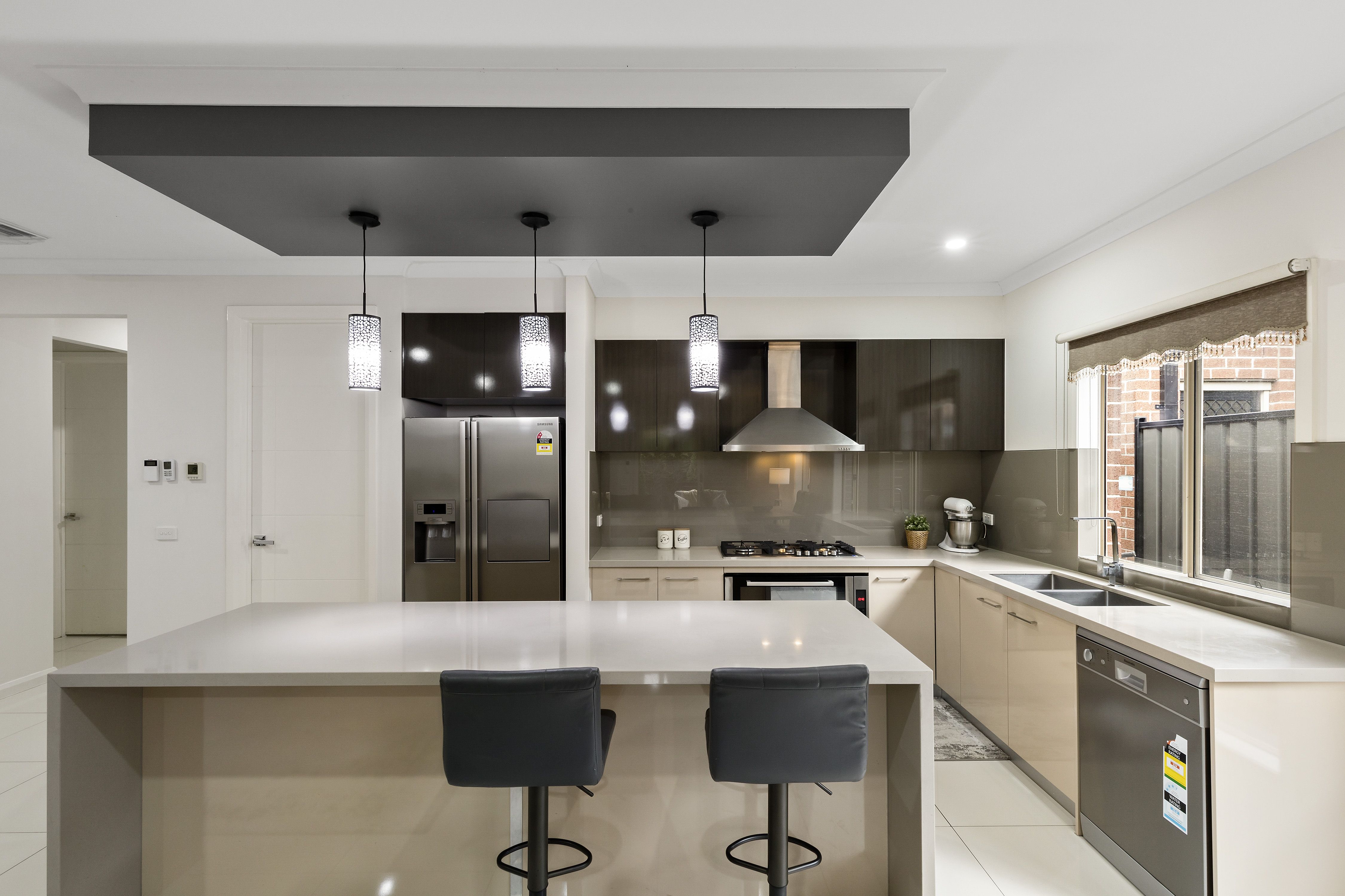 A designer kitchen takes centre stage, fitted with a Baumatic 5-burner gas cooktop, Baumatic dishwasher, 900mm electric IAG oven, and a butler's walk-in pantry - perfect for family life and entertaining. Open-plan living flows seamlessly to a stunning alfresco area with a timber-decked veranda, ideal for relaxed gatherings all year round.